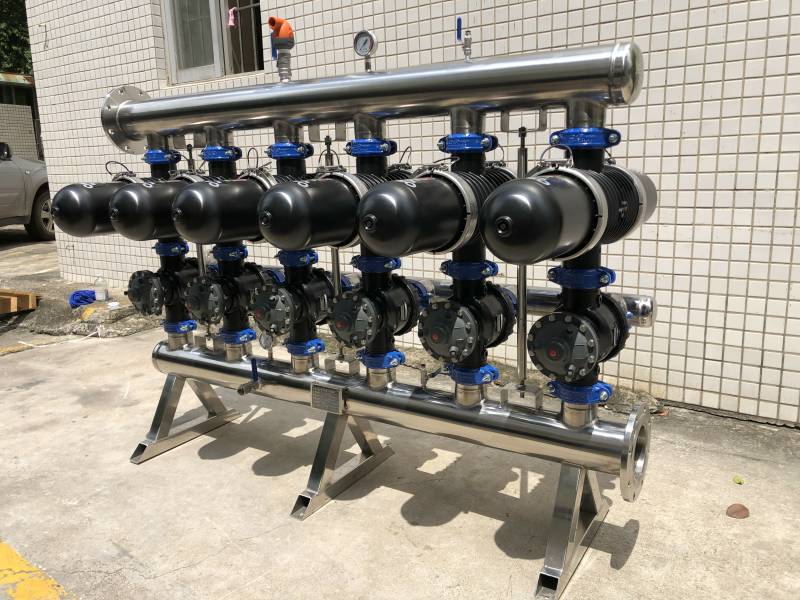 自清洗式叠片过滤器的过滤头和身是由增强聚酰胺塑料成形制造,防腐耐磨,可承受工作压力1.0Mpa。过滤叠片材质为聚丙烯PP塑料,密封为EPDM,进出水及排水管路可以选择为碳钢喷涂环氧树脂、HDPE、PP或不锈钢材质等,这一切使得整套过滤器系统能抵挡恶劣的水处理工作环境。